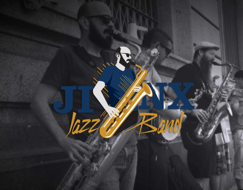 Персонажный логотип на основе реального человека музыканта джаз-группы